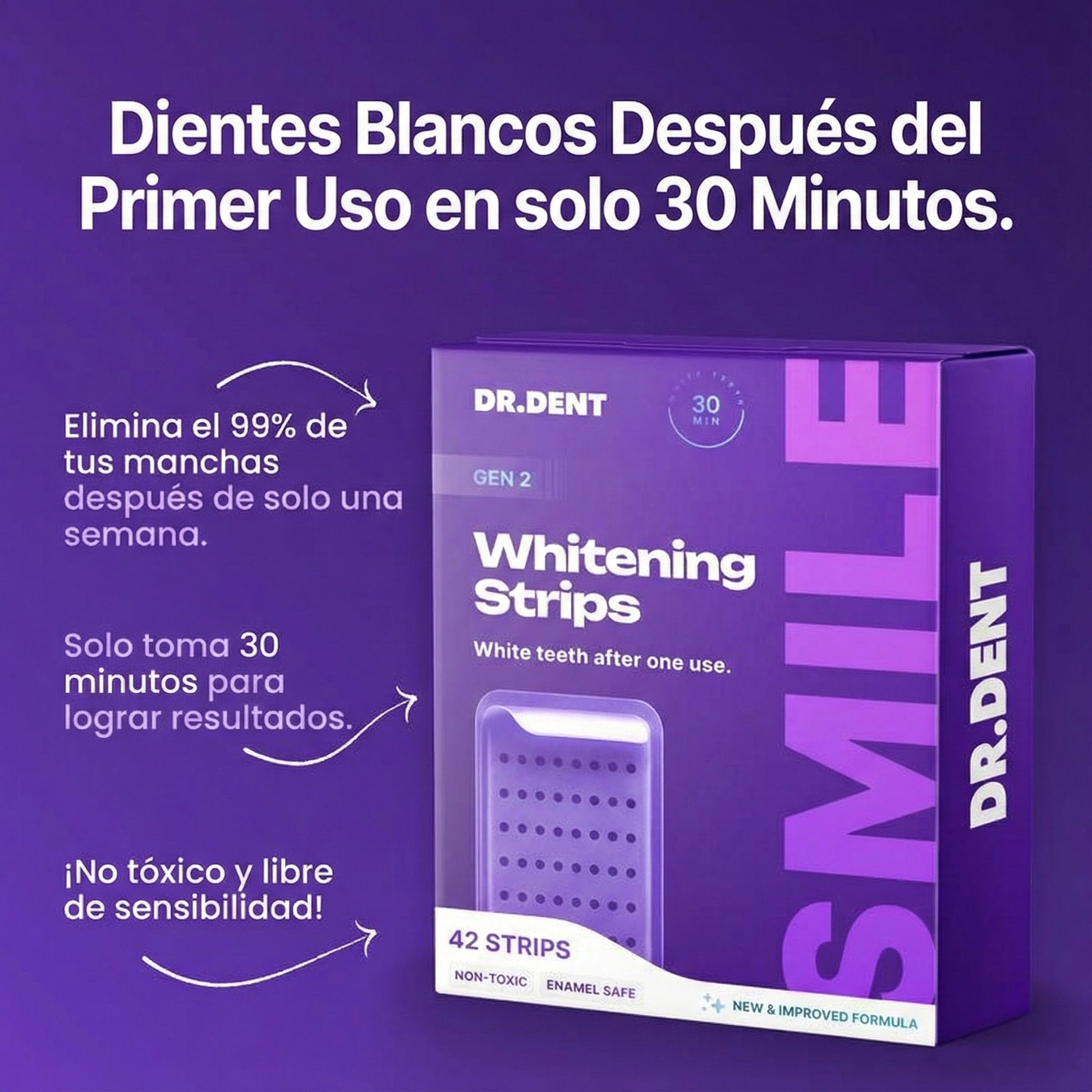 Blanquea visiblemente en 30 minutos cuidando esmalte y encías, sin sensibilidad